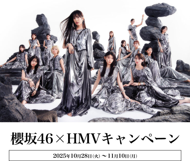 「櫻坂46 × HMV」コラボキャンペーンが2025年10月28日スタート、『Unhappy birthday構文』購入者に“メンバー絵柄クーポン”をプレゼント。撮り下ろしポスターの掲出やメンバーが表紙を飾るフリーペーパーの無料配布もあり。一部店舗ではパネル展も実施