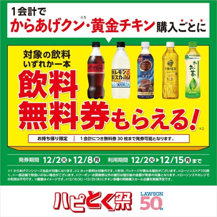 キャンペーン等 2025年11月28日 ローソンで『きりっと果実 / クラフトボス 600ml』買うと『天然水 1L』もらえる! お得な容量アップ「1個買うと、1個もらえるキャンペーン」が2025年11月25日スタート、購入期間は2025年12月1日まで