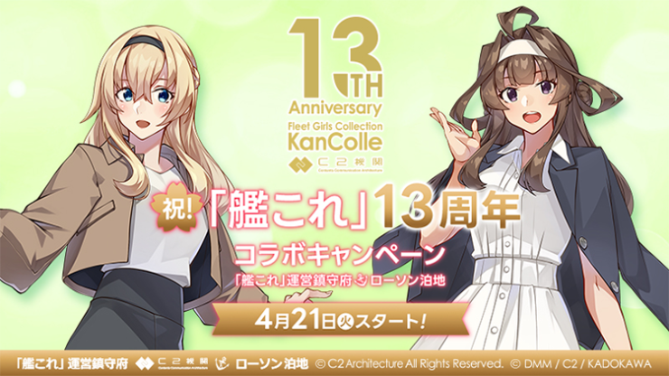 新商品情報 2026年4月15日 ローソン、『艦これ』13周年&大和ミュージアム リニューアル記念で呉支援遠征2026を実施。広島県呉市の一部店舗で「艦これ新作グッズ」が2026年4月23日から先行販売。艦娘珈琲セット第2弾や大和ツートンマグカップなどが登場