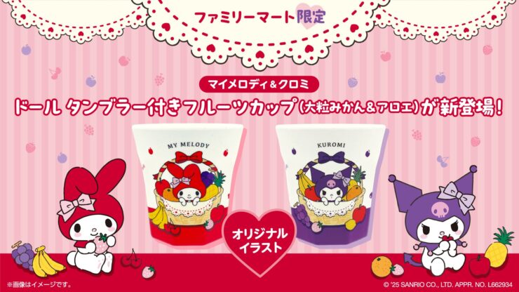 ファミマ限定『マイメロディ / クロミ』タンブラー付きフルーツカップが2025年10月21日頃から店頭販売中、マイメロちゃん / クロミちゃんがフルーツと一緒にバスケットに入った可愛いデザイン