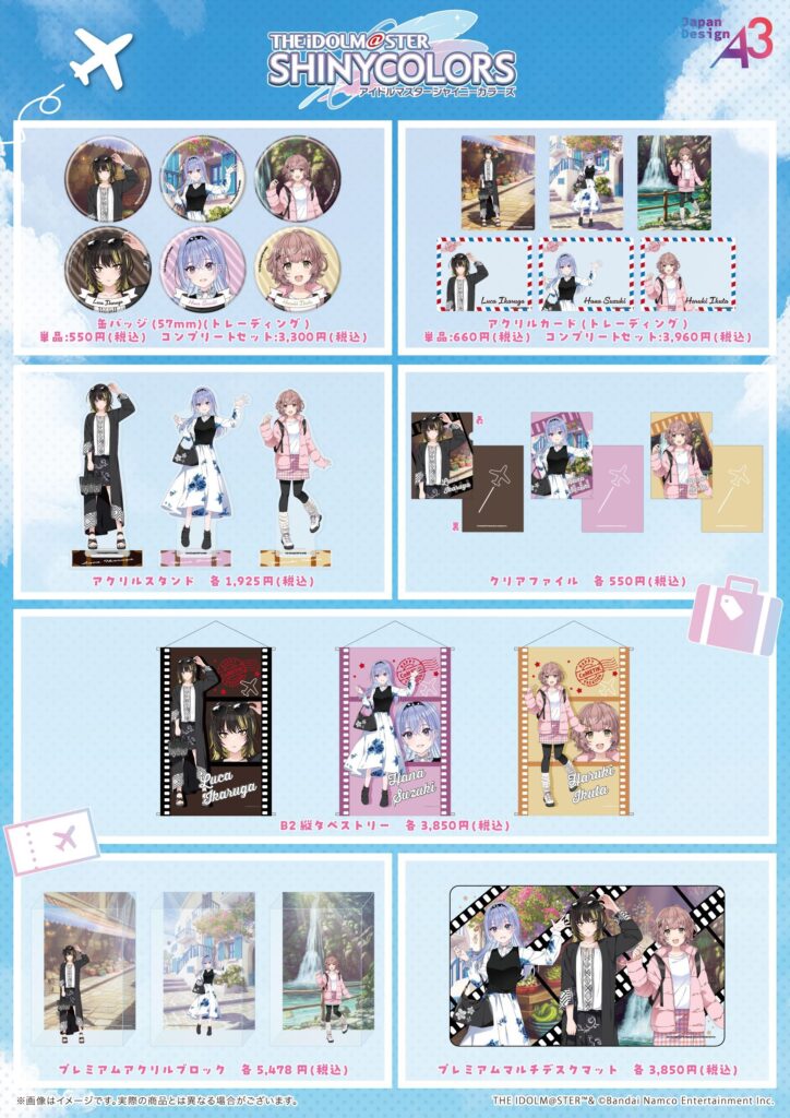今回のシャニマス×HMV ポップアップショップは、コメティック(斑鳩ルカ / 鈴木羽那 / 郁田はるき)の3人がお出かけ衣装で登場し、新作コラボグッズの販売やポストカード配布キャンペーン、等身大スタンディパネルの展示などが実施されるというもの。
