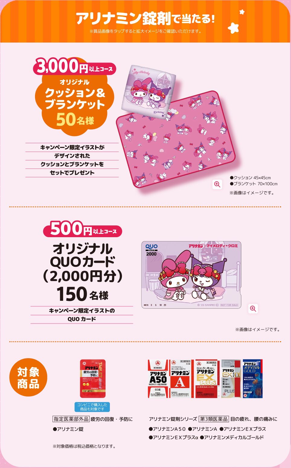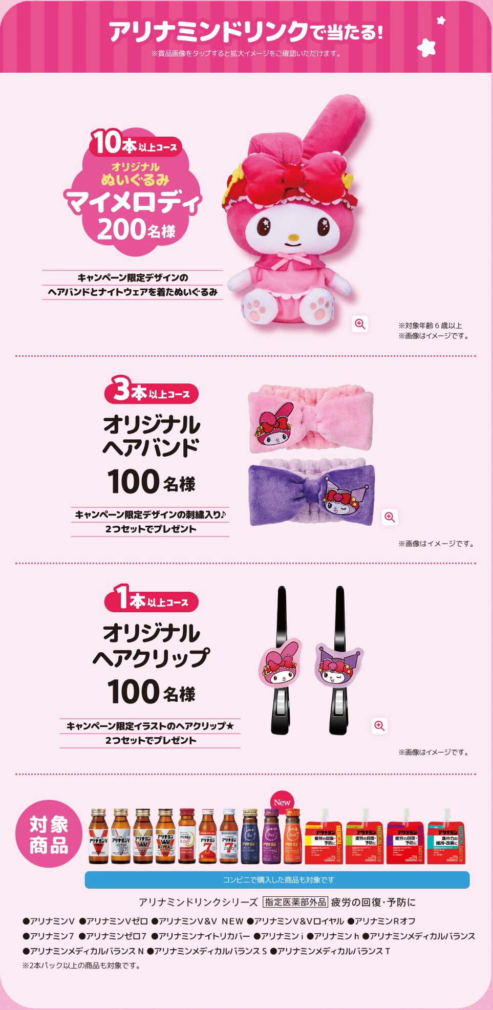 アリナミンシリーズ購入で「マイメロディ」「クロミ」コラボグッズが当たる