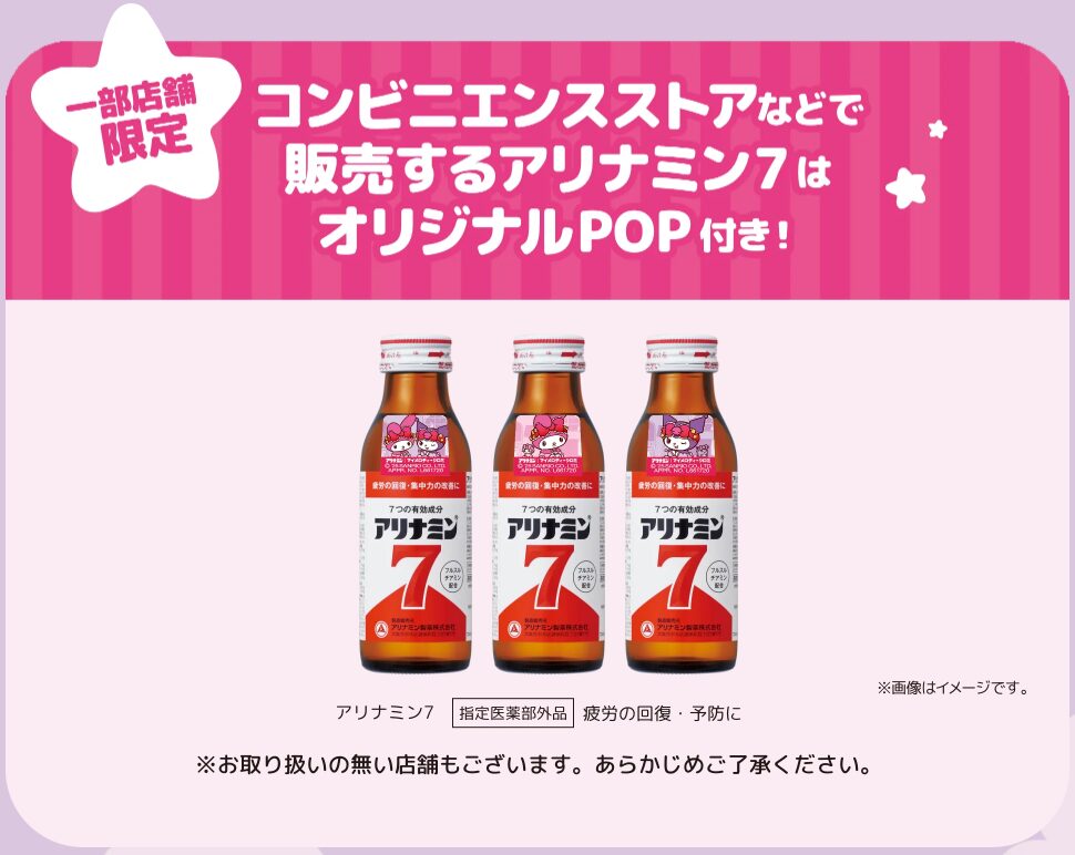 また、今回のコラボびじゅあるを使用した「オリジナルPOP付き アリナミン7」がコンビニなどで登場。