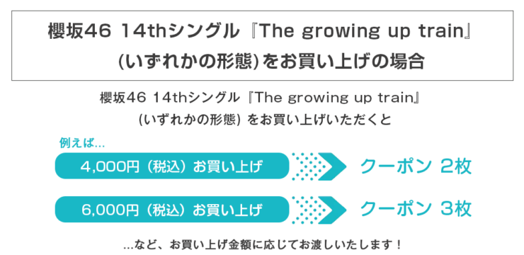 【3月10日~】『The growing up train』購入者に「櫻坂46メンバー絵柄クーポン」プレゼント