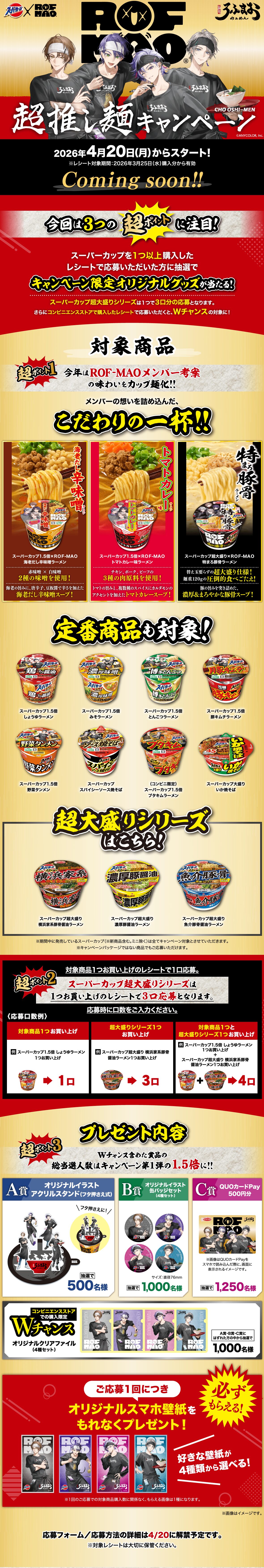 「スーパーカップ×ROF-MAO 推し麺キャンペーン 2026」が2026年4月20日(月)からスタートします。