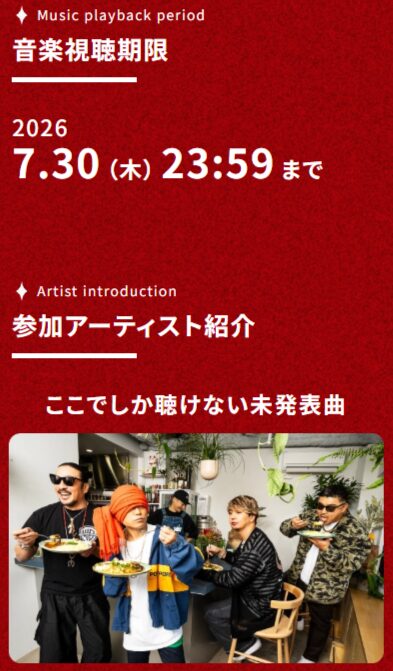 なお、オリジナルステッカーはめくるとQRコードが現れ、QRコードを読み込んでLINEでログインすると、特設サイトで湘南乃風の「未発表曲」を視聴できるそうです。視聴期限は2026年4月14日(火) ~ 7月30日(木) 23:59まで。