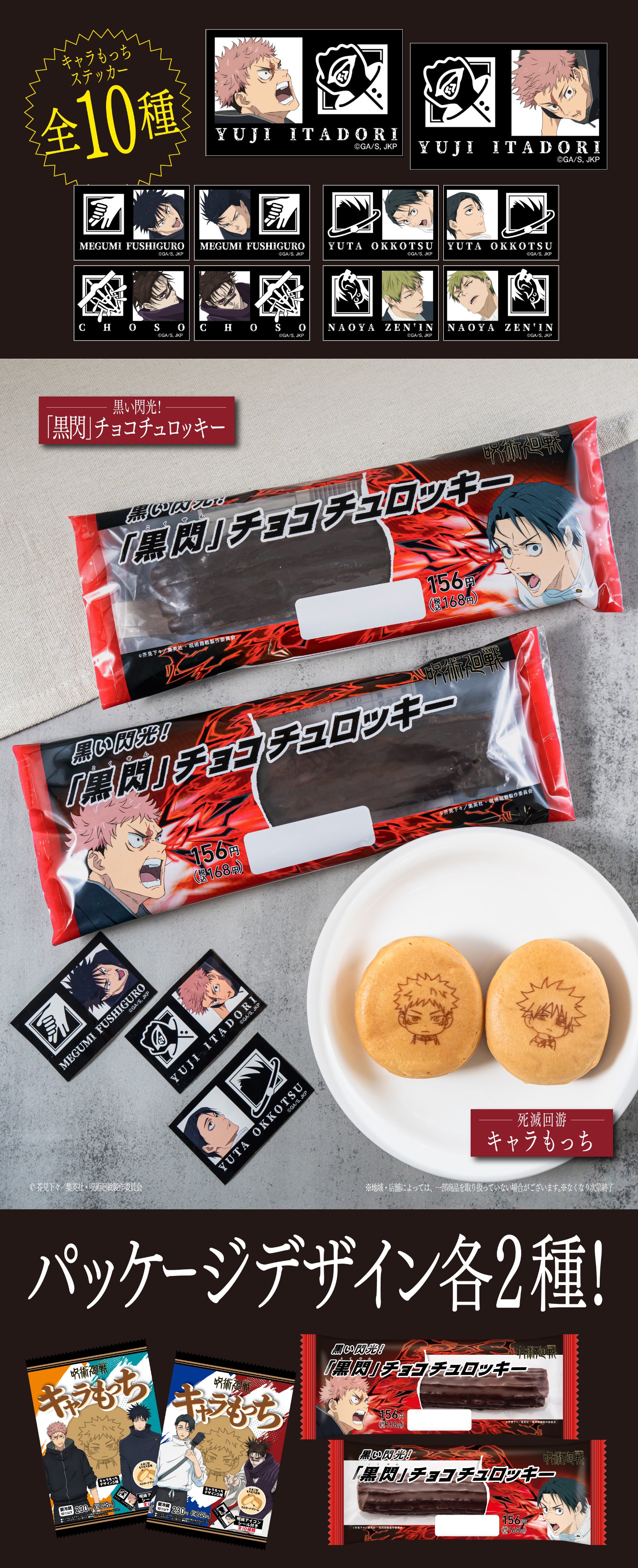 【1月13日~】呪術廻戦コラボお菓子「キャラもっち」「黒い閃光! 黒閃チョコチュロッキー」が店頭発売