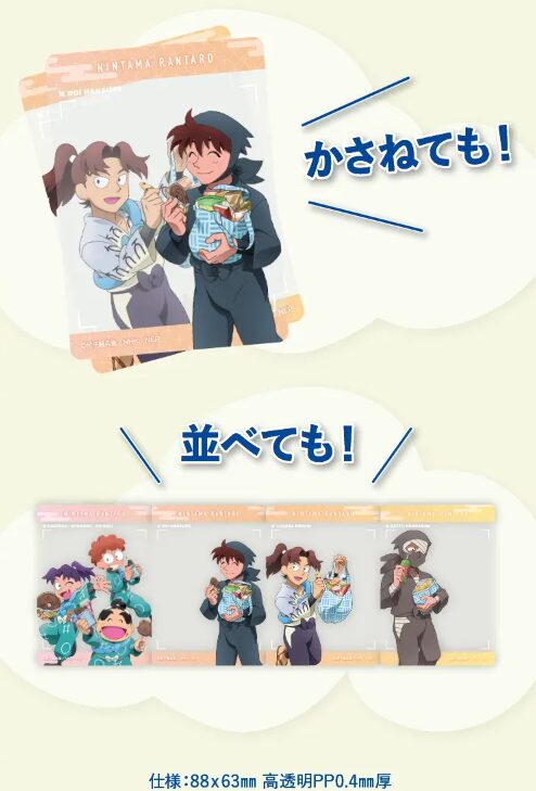 クリアカードは「乱太郎&きり丸&しんべヱ」、「土井先生」、「利吉さん」、「雑渡さん」の全4種類がラインアップされ、好きなデザインを選んでもらえます。また、クリアカードは重ねたり並べて楽しむことも可能とされています。