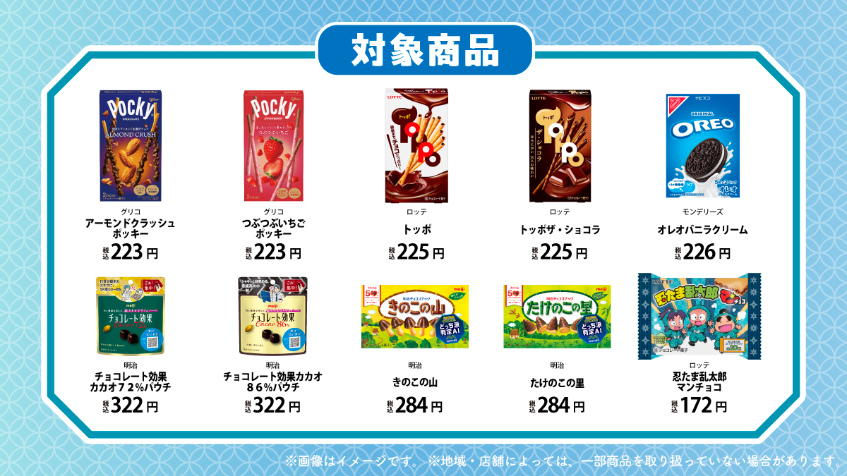 対象のお菓子は「明治 きのこの山 / たけのこの里」や「ロッテ 忍たま乱太郎マンチョコ」(1月27日発売)など。配布期間は2月2日(月)までとされていますが、景品が無くなり次第、終了となります。