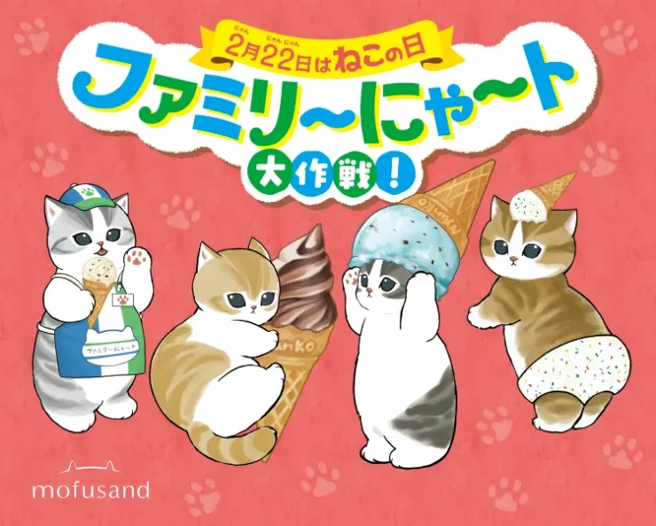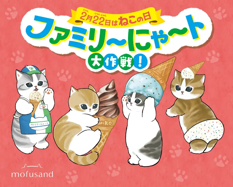 コンビニのファミリーマートと『mofusand(モフサンド)』が2026年2月に猫の日コラボレーション。