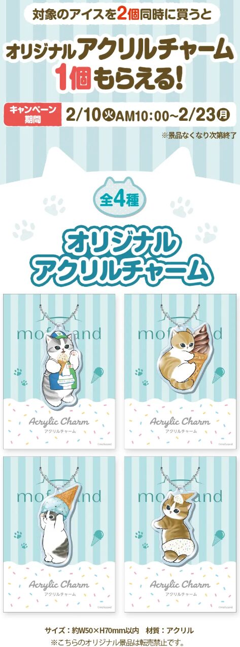 対象のアイス購入で「mofusand(モフサンド) アクリルチャーム」プレゼント