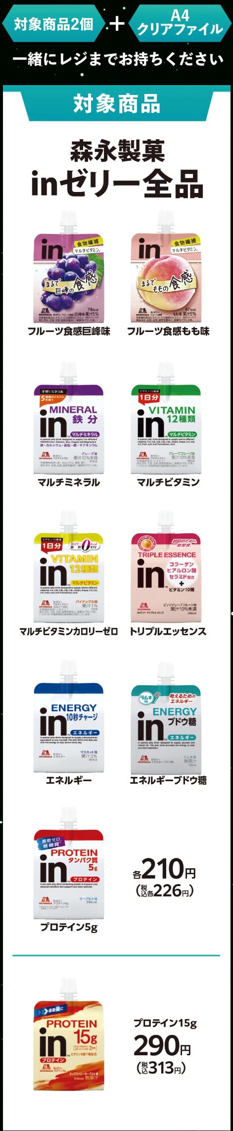 対象の商品は「森永製菓 inゼリー エネルギー」(税込226円)など。配布期間は2月23日(月)までとされていますが、景品が無くなり次第、終了となります。