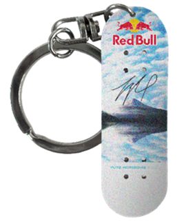 キーホルダーは「スケートデッキ風デザイン」と「レッドブル・エナジードリンク缶モチーフデザイン」の2種類が用意され、いずれにも堀米雄斗選手のプリントサイン入り。キーホルダーは好きなデザインを選んでもらえます。