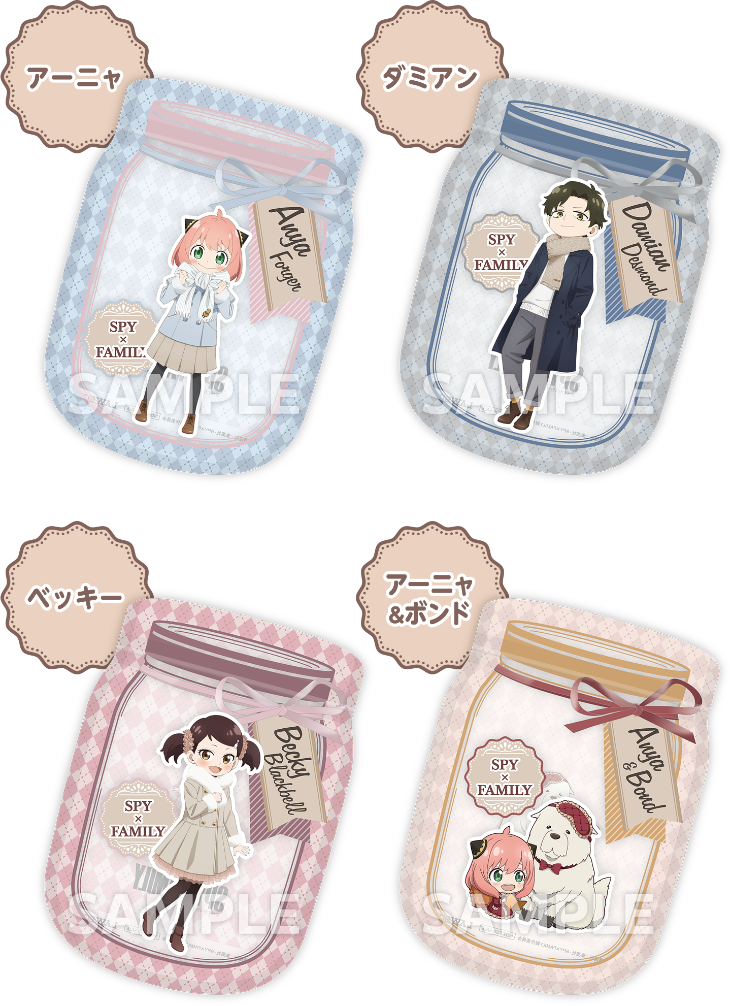 ジッパーバッグは「アーニャ」、「ダミアン」、「ベッキー」、「アーニャ&ボンド」の全4種類がラインアップされ、好きなキャラクターを選んでもらえます。配布枚数は各店計12枚。