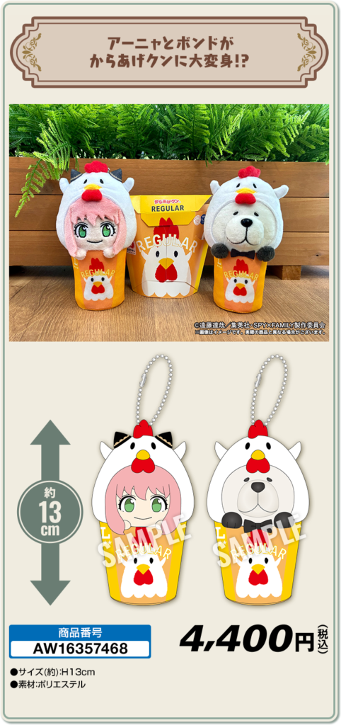 • スパイファミリー×ローソン「なりきり! からあげクンミニぬいキーホルダー」(全1種):4,400円(税込)