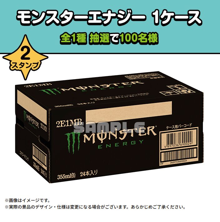 • 2スタンプで応募「モンスターエナジー 1ケース」:抽選で100名