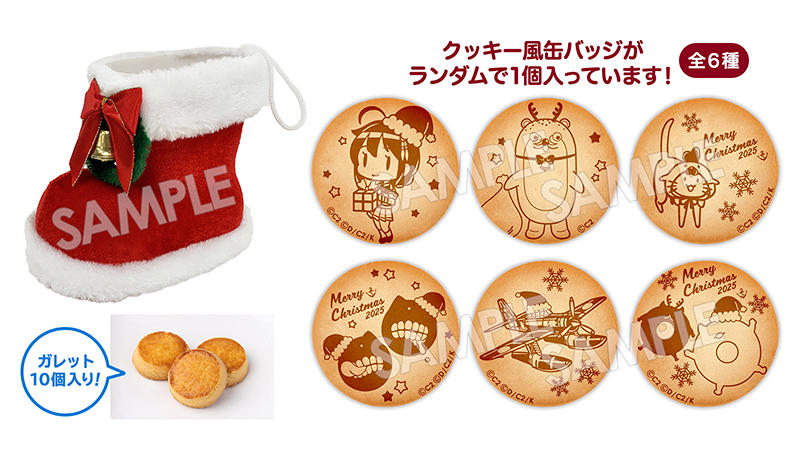 • ブーツ1個につき、ガレット10個とクッキー風缶バッジ(全6種/ランダム)が1個封入