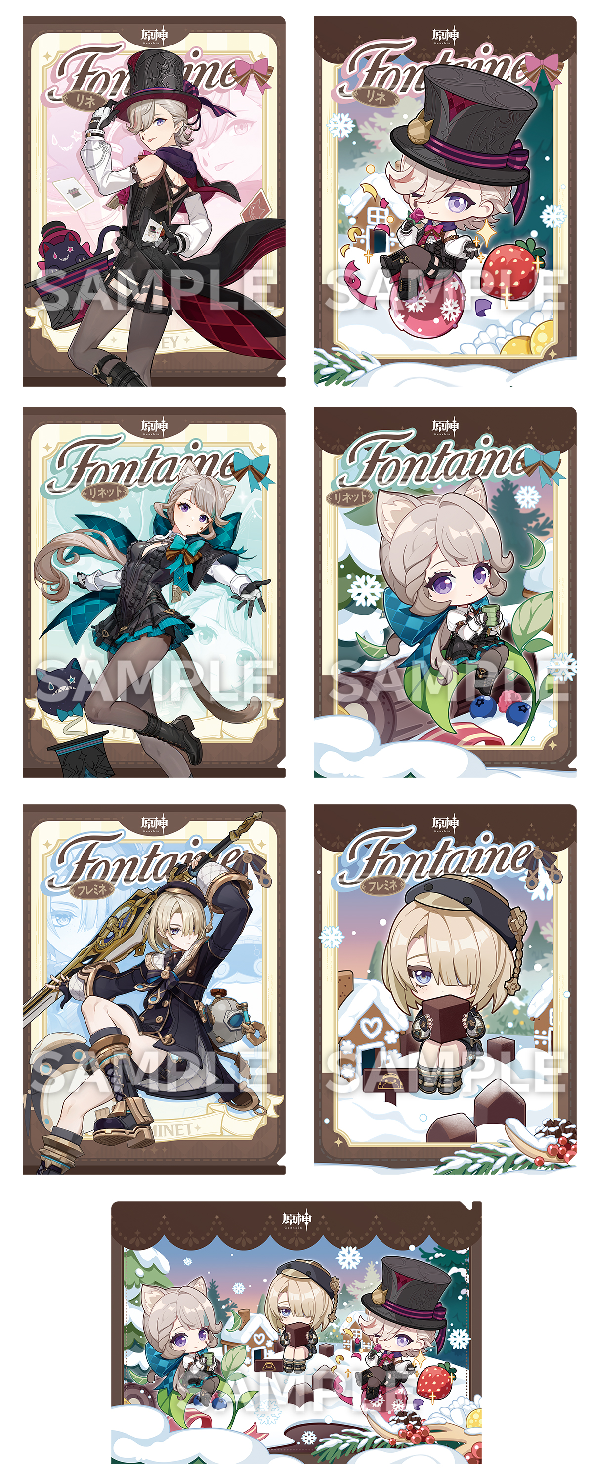 クリアファイルは「リネ(等身)」、「リネ(ミニキャラ)」、「リネット(等身)」、「リネット(ミニキャラ)」、「フレミネ(等身)」、「フレミネ(ミニキャラ)」、「集合(ミニキャラ)」の全6種類がラインアップされ、好きなデザインを選んでもらえます。配布枚数は各店計21枚。