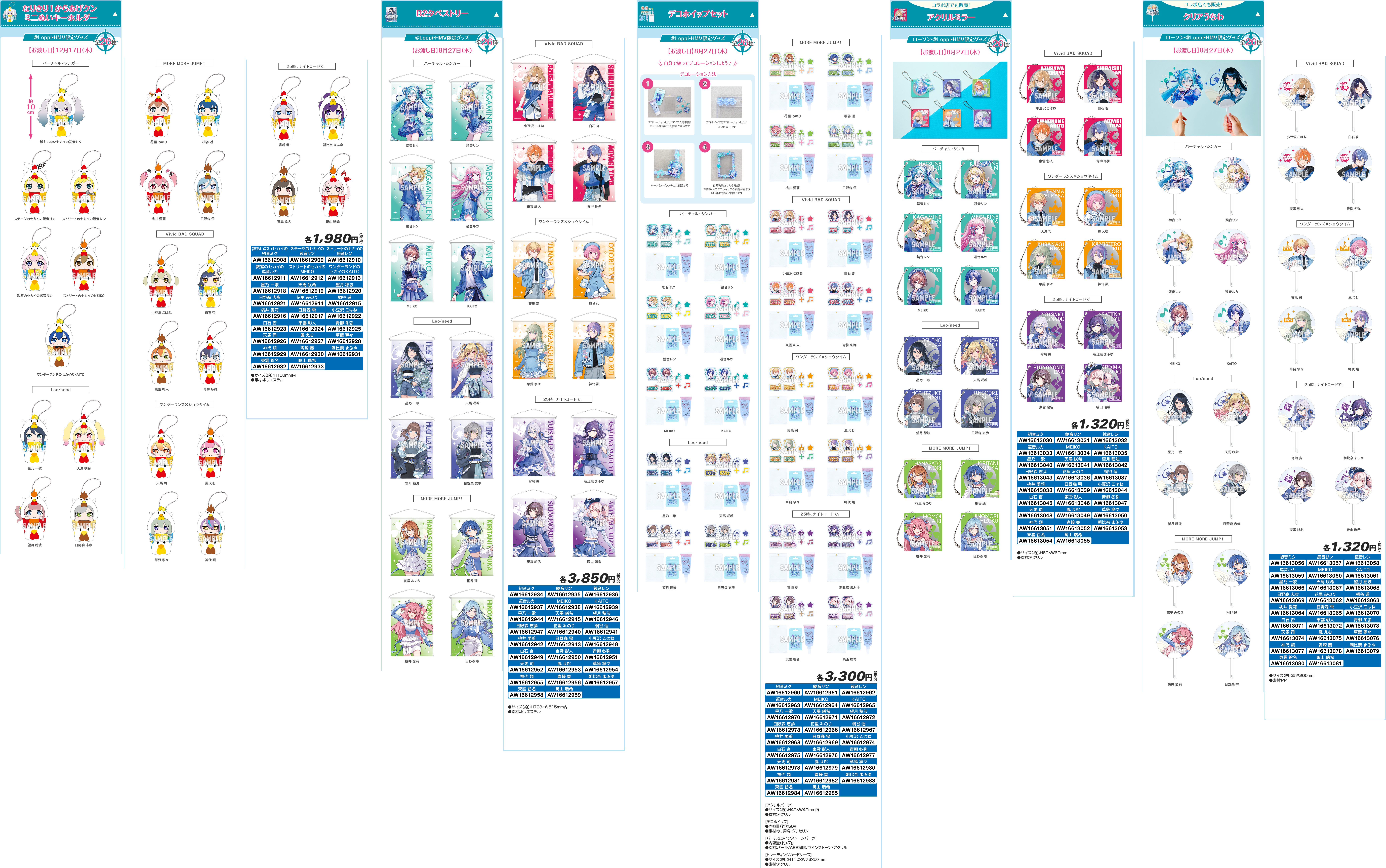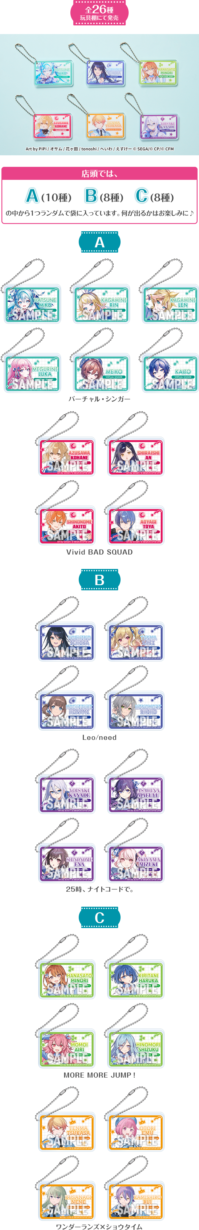 • ラインアップ:【全6種】(バーチャル・シンガー、Leo/need、MORE MORE JUMP!、Vivid BAD SQUAD、ワンダーランズ×ショウタイム、25時、ナイトコードで。)