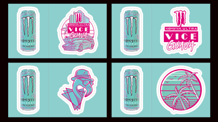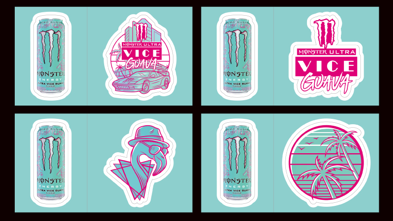 ステッカーは3月31日(火)から販売が始まっている新商品「モンスター ウルトラバイスグァバ」の缶などがデザインされたもので、全4種の中から好きな1枚を選んでもらえます。配布数は各店で計20枚(4種×5枚)。