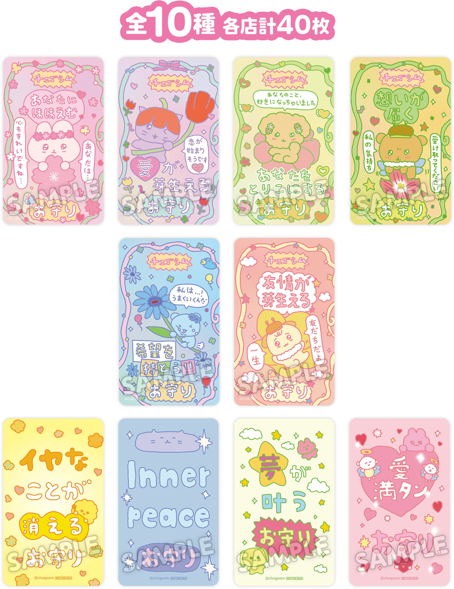 お守りステッカーは全10種類がラインアップされ、全10種の中から好きな2枚を選んでもらえます。配布枚数は各店計40枚。