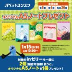 クリアファイルは各店で計20枚(各4枚ずつ)配布され、一人あたり1店舗での買い物につき各種1枚、計5枚までもらえるそうです。対象のお菓子は「ロッテ ACUO クリスタルクール」(税込138円)など。
