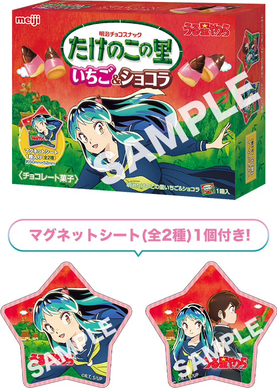 今回のコラボレーションでは、対象賞品の購入で「オリジナルクリアファイル」がもらえるキャンペーンや、“ラムちゃん”デザインの「たけのこの里」の販売、オリジナルグッズの販売などが予定されています。