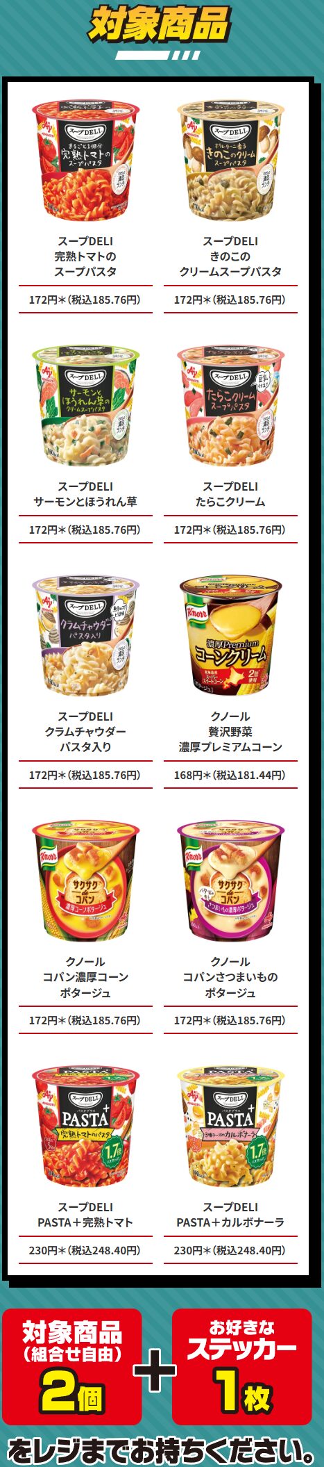 対象のカップスープを2個買うと