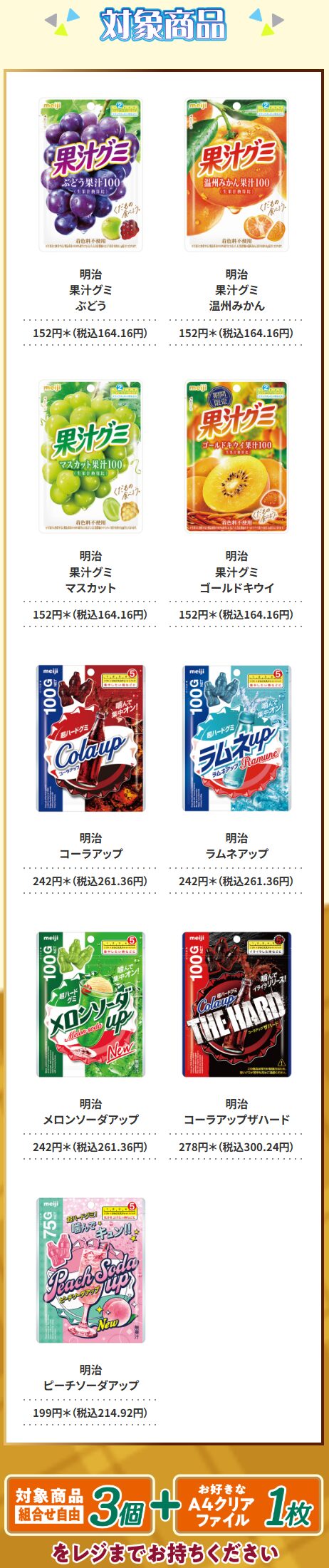 対象商品は「明治 果汁グミ ぶどう」(税込164.16円)など。配布期間は12月3日(水)までとされていますが、景品が無くなり次第、終了となります。