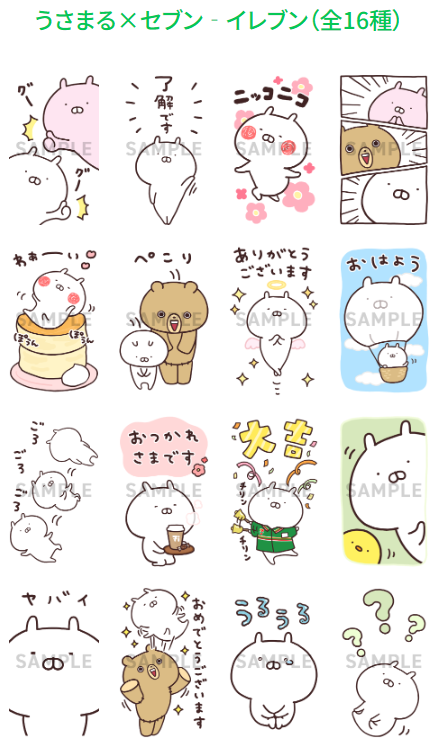 LINEスタンプは全16種類のデザインが用意され、うさまる達の可愛いコラボスタンプとなっています。