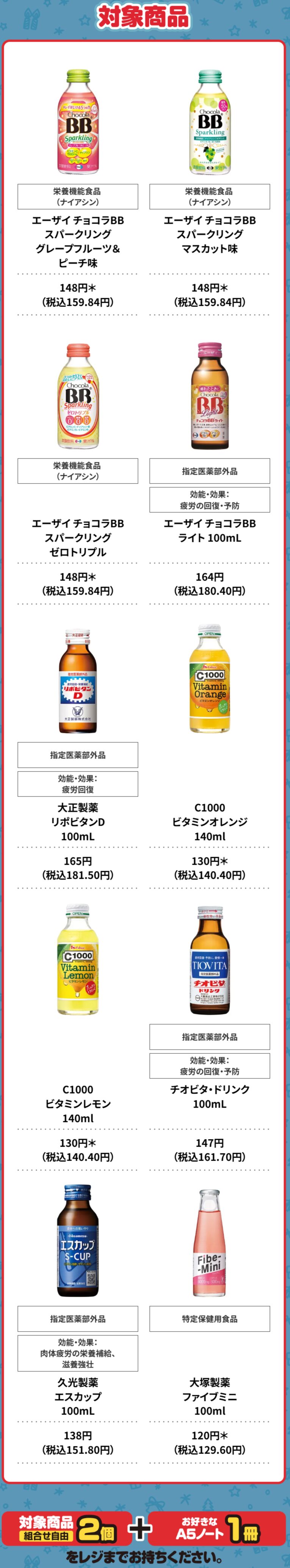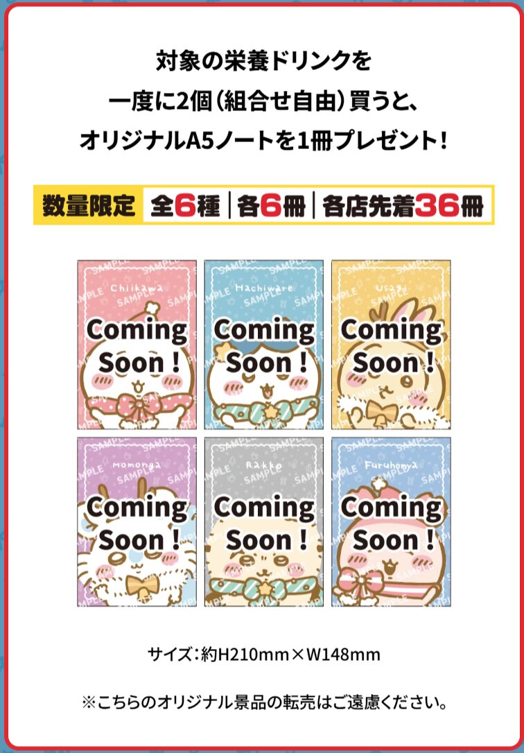 対象の栄養ドリンク購入で「ちいかわ A5ノート」プレゼント