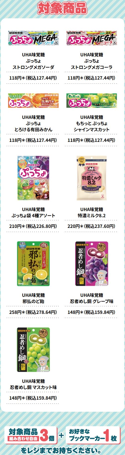 対象商品は「UHA味覚糖 ぷっちょ ストロングメガソーダ」(税込127.44円)など。配布期間は1月28日(水)までとされていますが、景品が無くなり次第、終了となります。