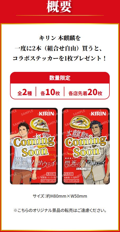 今回のキャンペーンは、期間中にセブンイレブンでキリンの本麒麟を一度に2本購入すると、「閃光のハサウェイ コラボステッカー」(全2種)を1枚もらえるというもの。