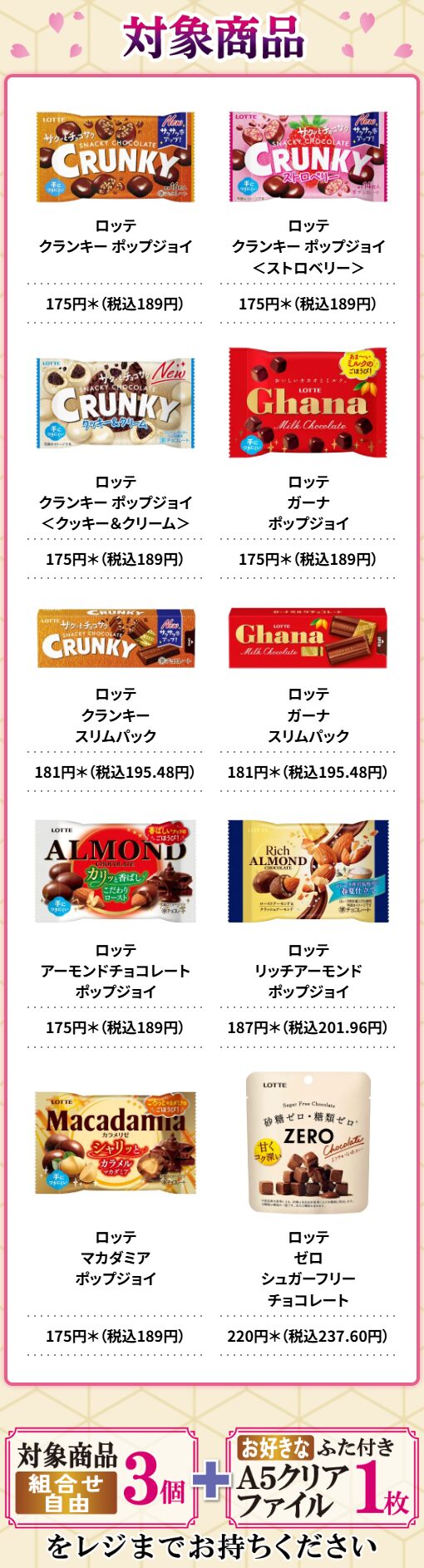 対象商品は「ロッテ クランキー ポップジョイ」(税込189円)など。配布期間は4月1日(水)までとされていますが、景品が無くなり次第、終了となります。