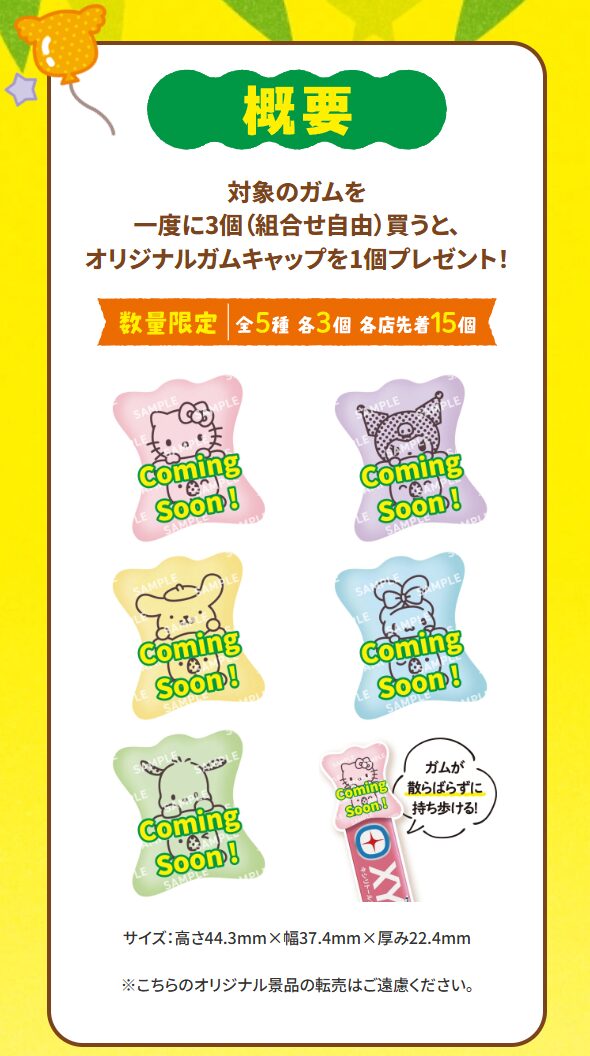 今回のキャンペーンは、期間中にセブンイレブンで対象のガムを一度に3個購入すると、「サンリオキャラクターズ×コアラのマーチ オリジナルガムキャップ」(全5種)を1個もらえるというもの。
