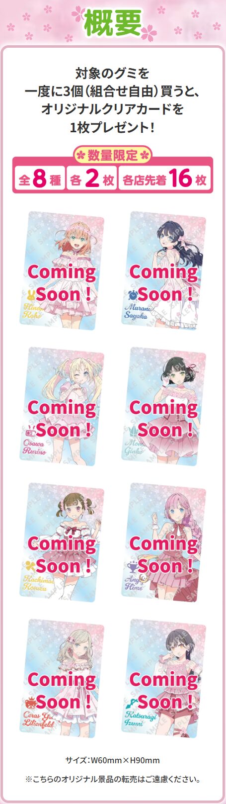 対象のグミを一度に3個購入いただくと、オリジナルクリアカード(全8種)を1枚プレゼント✨