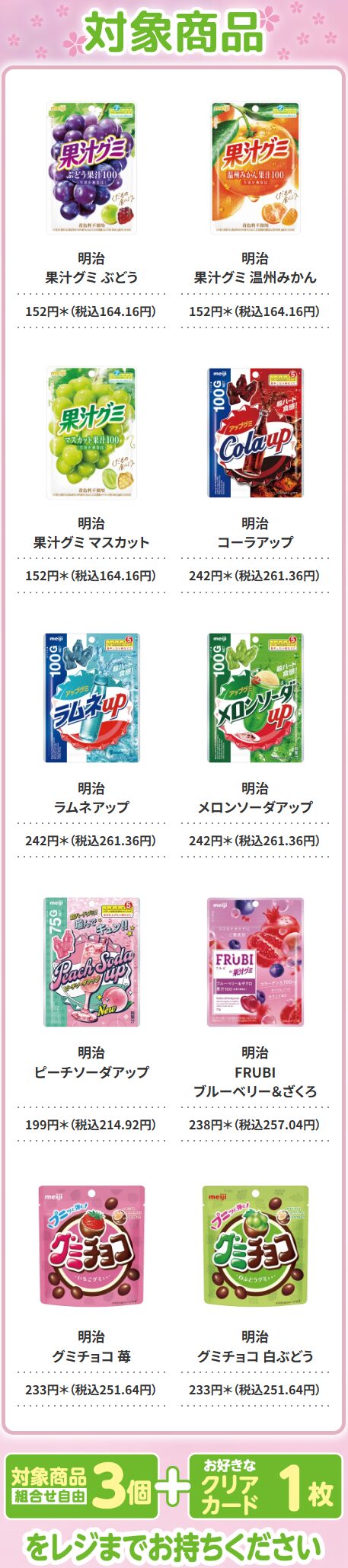 対象商品は「明治 果汁グミ ぶどう」(税込164.16円)など。配布期間は5月13日(水)までとされていますが、景品が無くなり次第、終了となります。