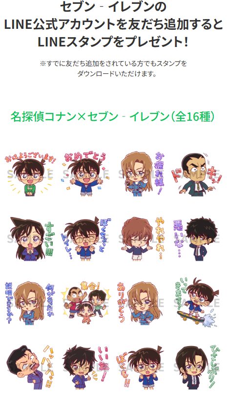 セブン-イレブンのLINEアカウントを友だち登録で「名探偵コナン ハイウェイの堕天使コラボLINEスタンプ」プレゼント