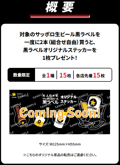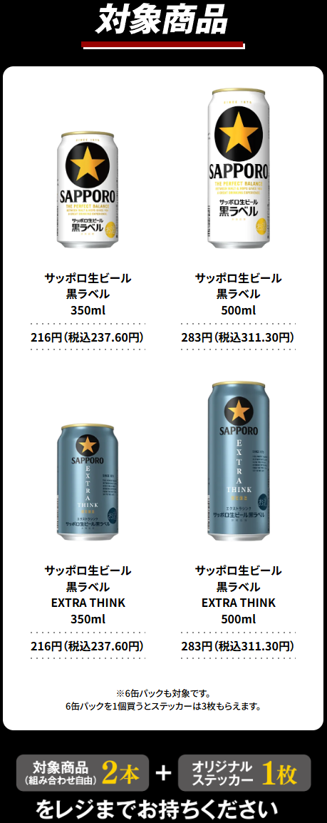 対象の缶ビール購入で「サッポロ生ビール 黒ラベル ステッカー」プレゼント