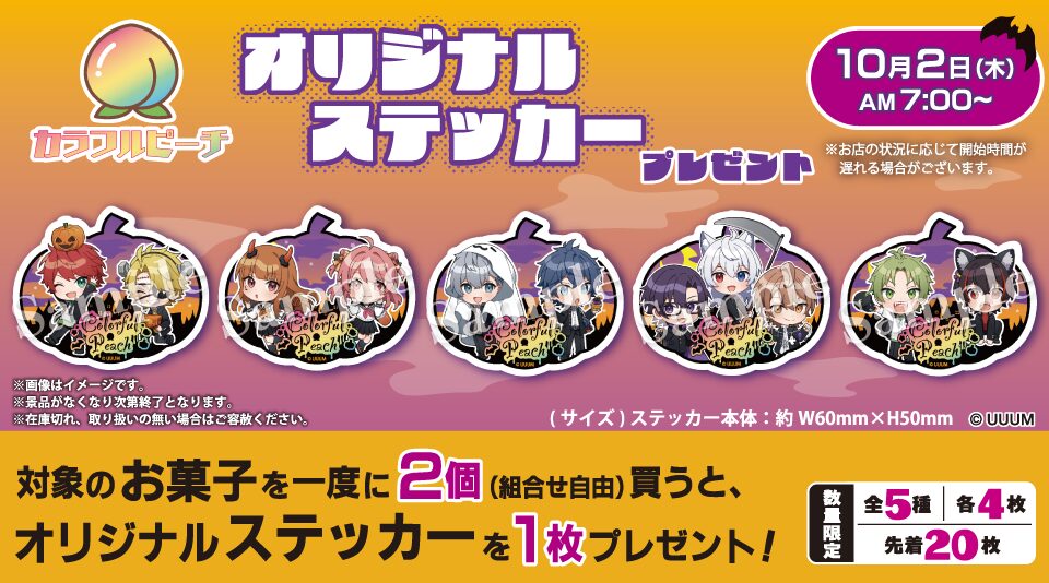 【10月2日7:00~】対象商品購入で「カラフルピーチ ステッカー」プレゼント