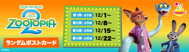セブンイレブン NEW 2025年12月1日 セブンイレブンで「ズートピア2 ランダムポストカード」第1弾が2025年12月1日発売、ニック / ジュディ / ゲイリーたちが全5種(ランダム)のポストカードになって登場!