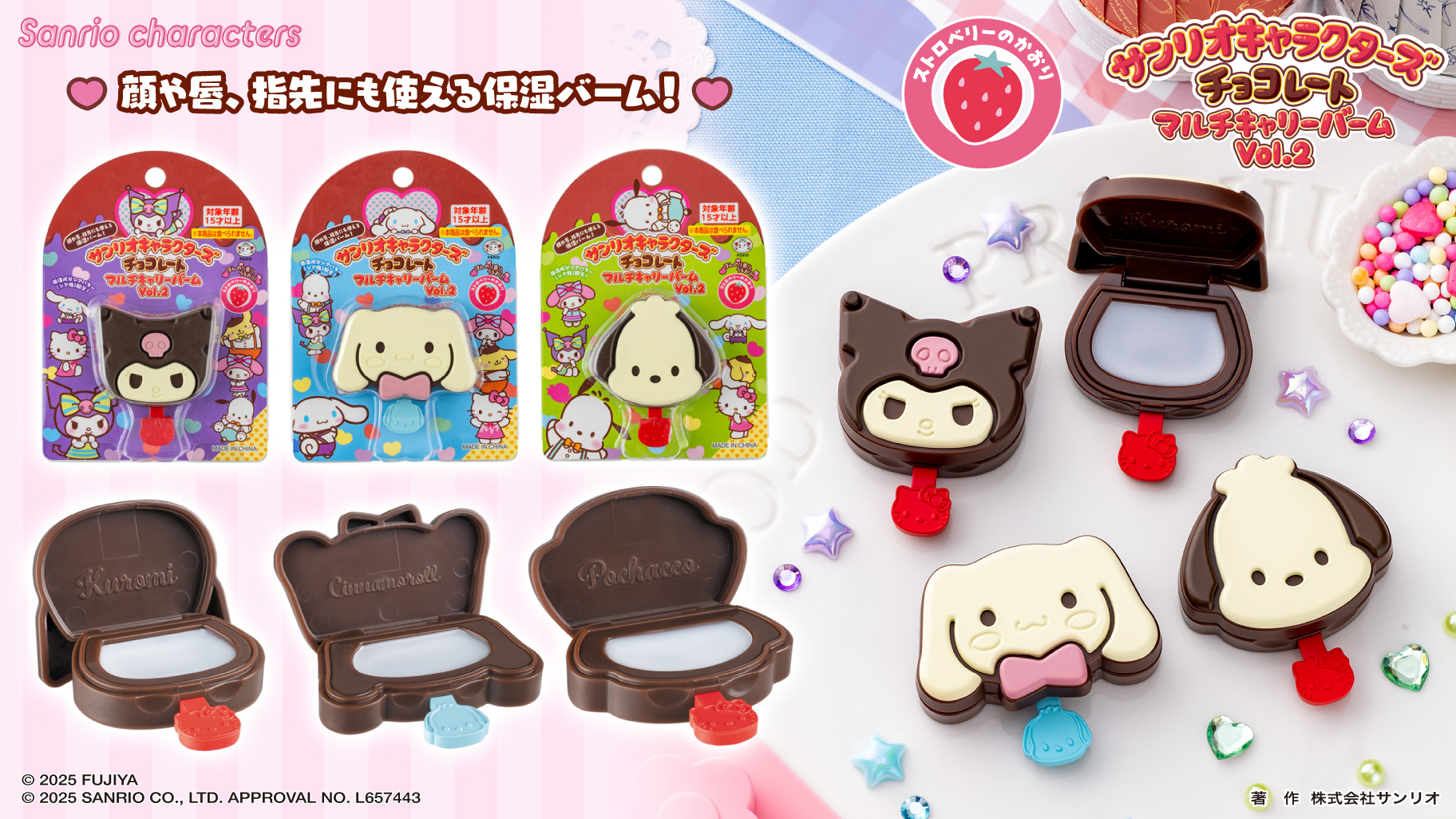 サンリオの新作コスメ「サンリオキャラクターズチョコレート マルチキャリーバーム Vol.2」がコンビニやドン・キホーテ、マツモトキヨシなどで2025年10月27日(月)から順次販売が開始されます。全3種類で、価格は各1,540円(税込)。
