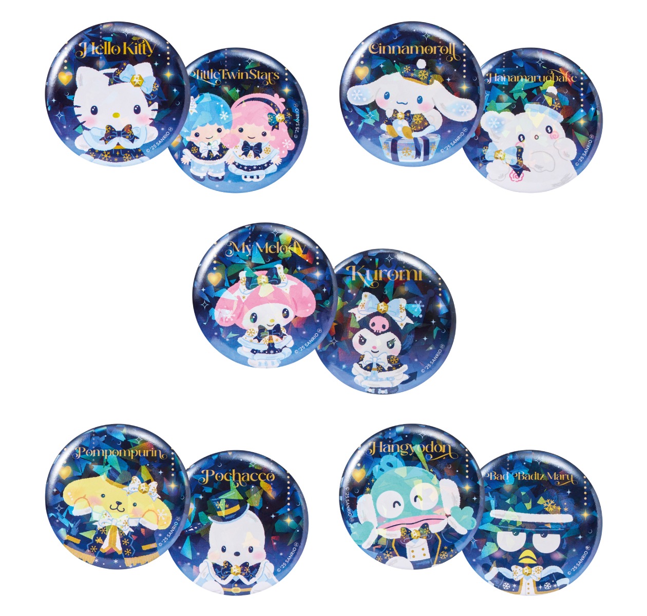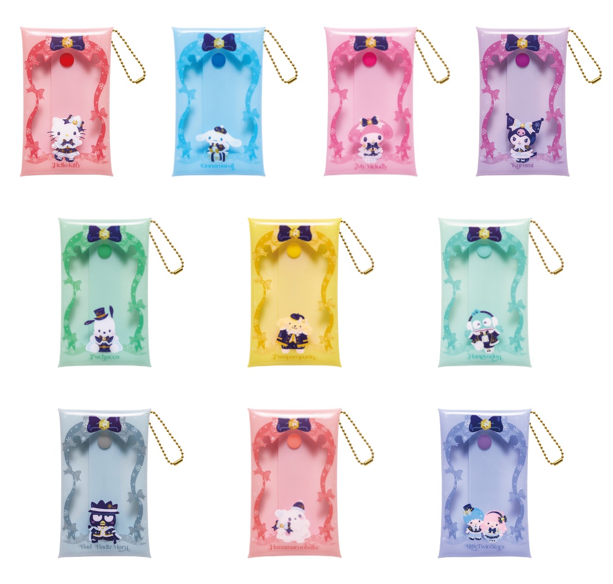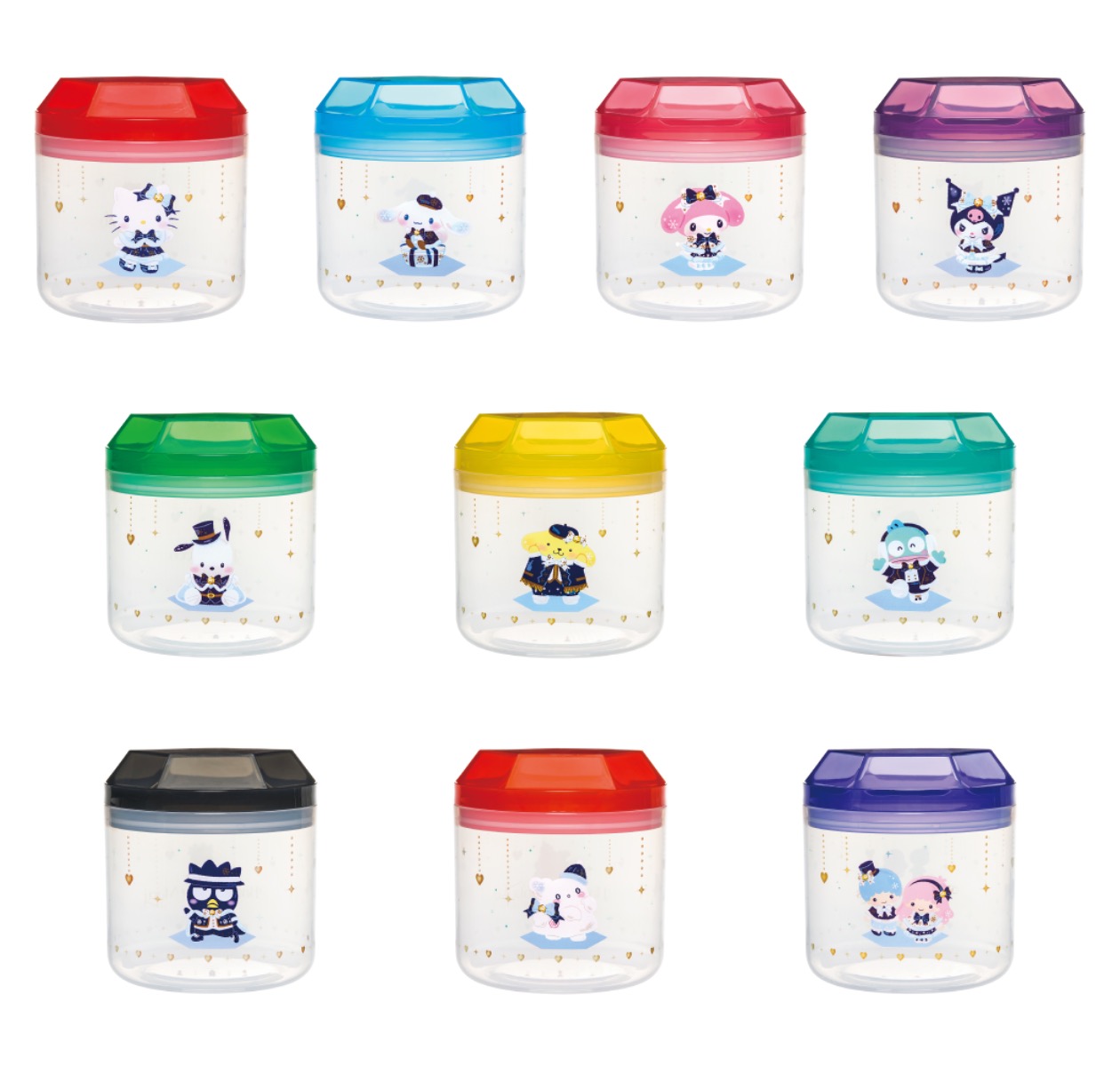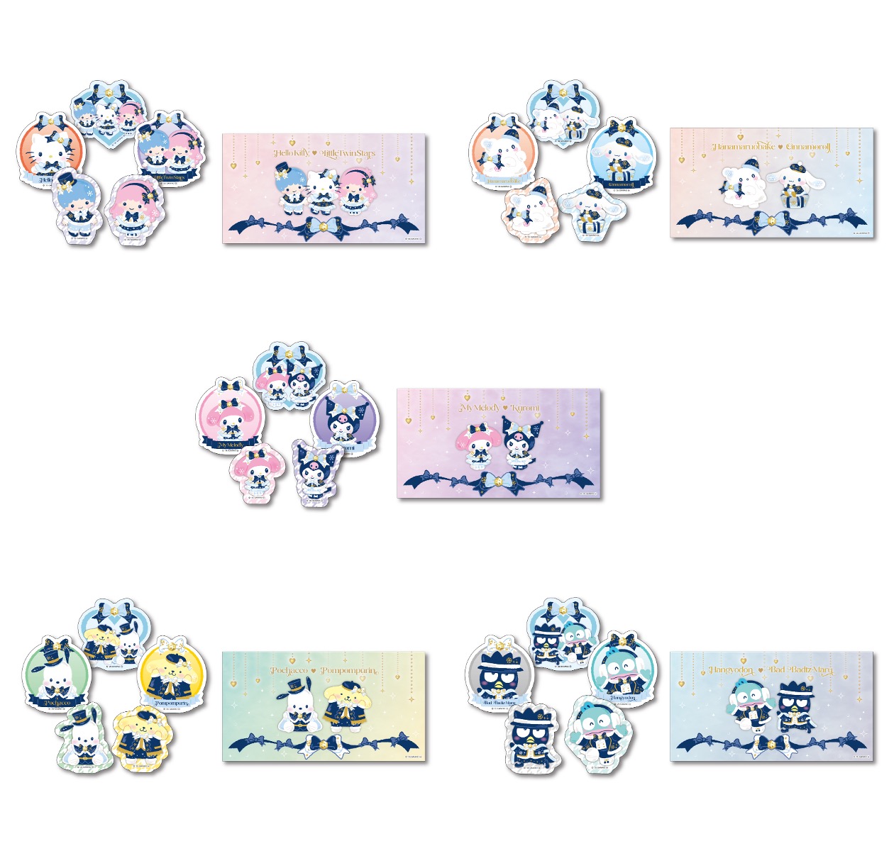 - ラインアップ:【全5種】(ハローキティ&リトルツインスターズ、シナモロール&はなまるおばけ、マイメロディ&クロミ、ポムポムプリン&ポチャッコ、ハンギョドン&バッドばつ丸)