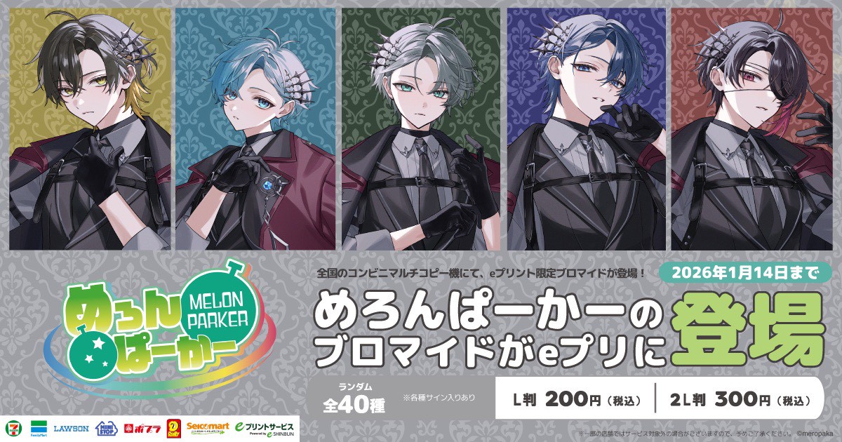 コンビニのコピー機で「めろんぱーかー オフィシャルブロマイド 第2弾」が2025年11月15日(金)から販売が始まります。販売期間は12月14日(日)まで。