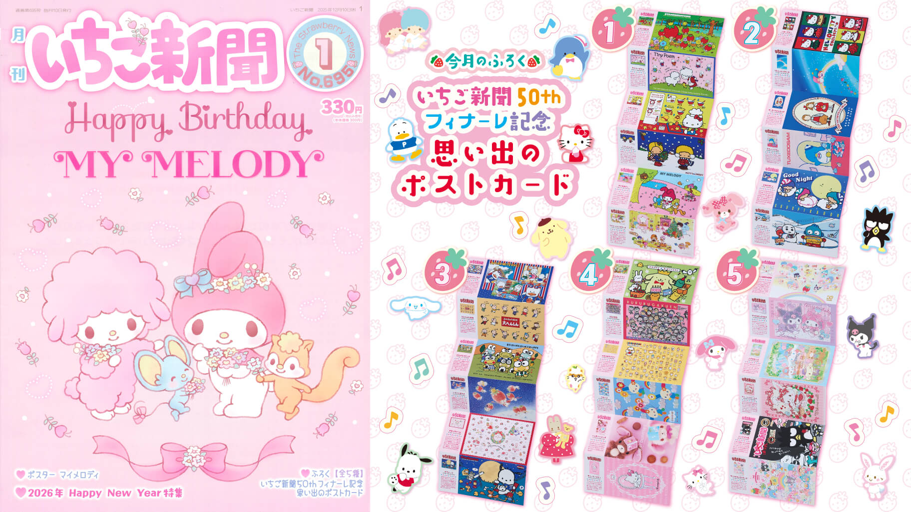いちご新聞 2026年1月号では、2026年1月18日(日)に誕生日を迎える「マイメロディ」を特集。
