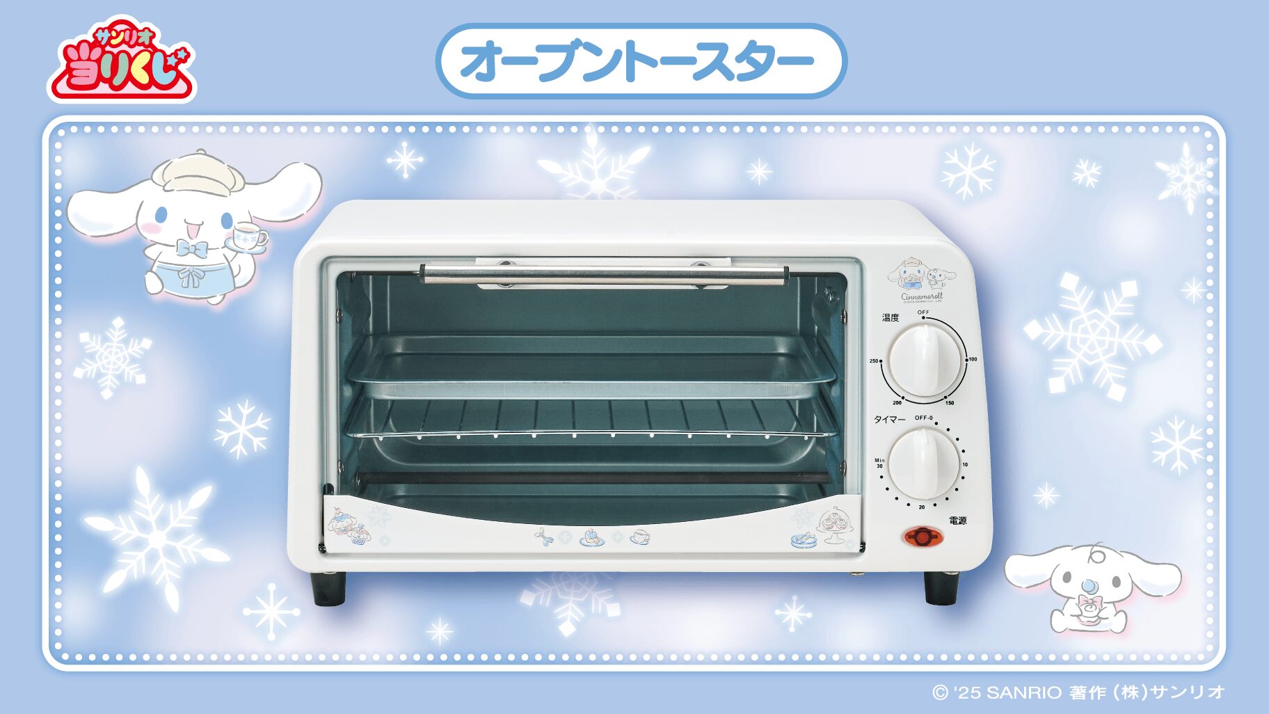 メインビジュアルにはカフェで働くシナモンとみるくが登場し、賞品は全10種類がラインアップ。「オーブントースター」、「レリーフクッション」、「ブランケット」、「マスコット」、「ガラスボウル」、「ポーチ」、「スクラップブック」、「ミラー付き小物入れ」、「マルシェバック」が用意されています。