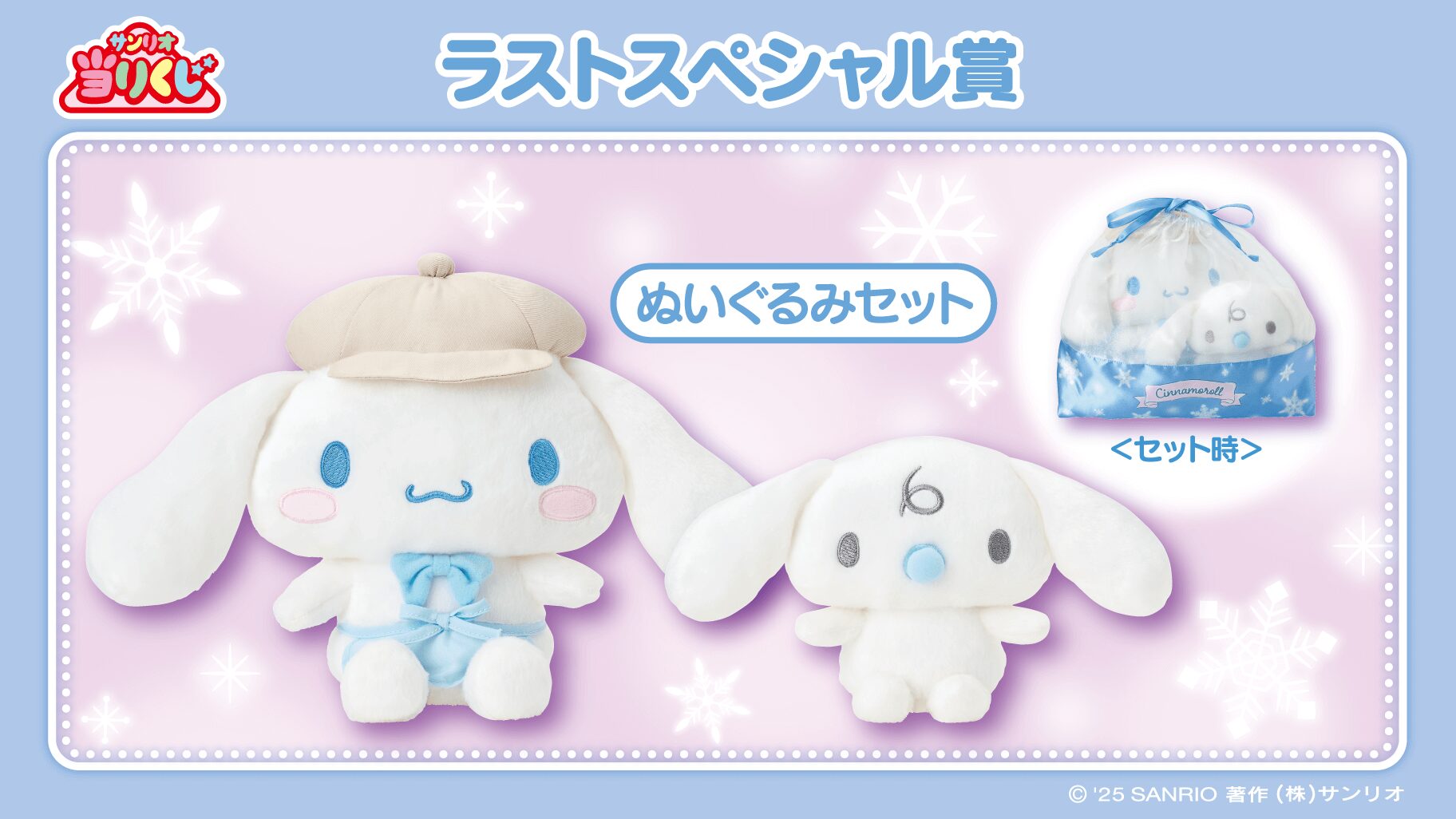 最後のくじを引いた人にプレゼントされるラストスペシャル賞は、シナモンとみるくの可愛い「ぬいぐるみセット」となっています。