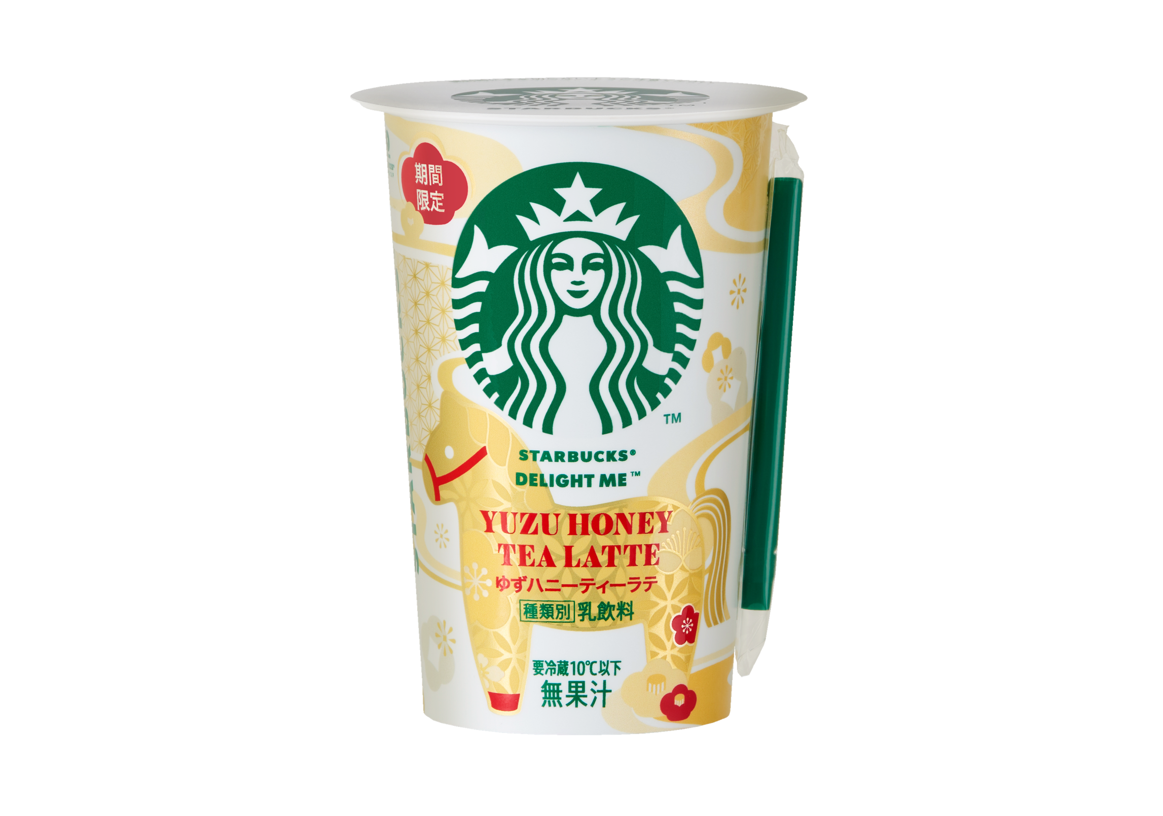 スタバの新作「ゆずハニーティーラテ」がコンビニで2025年12月23日発売、2026年の干支「午(うま)」をあしらった“干支デザインカップ”を採用