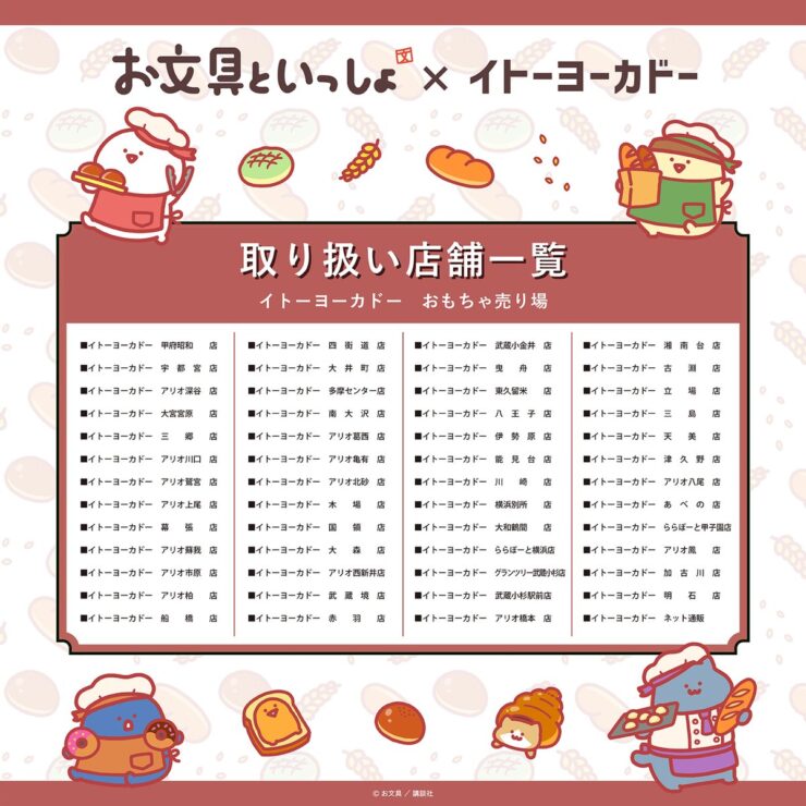 上記グッズはイトーヨーカドーの一部店舗で2月6日(金)から店頭販売が開始され、イトーヨーカドーの取り扱い店舗については、以下の画像で確認可能。