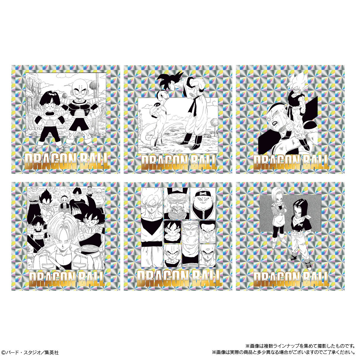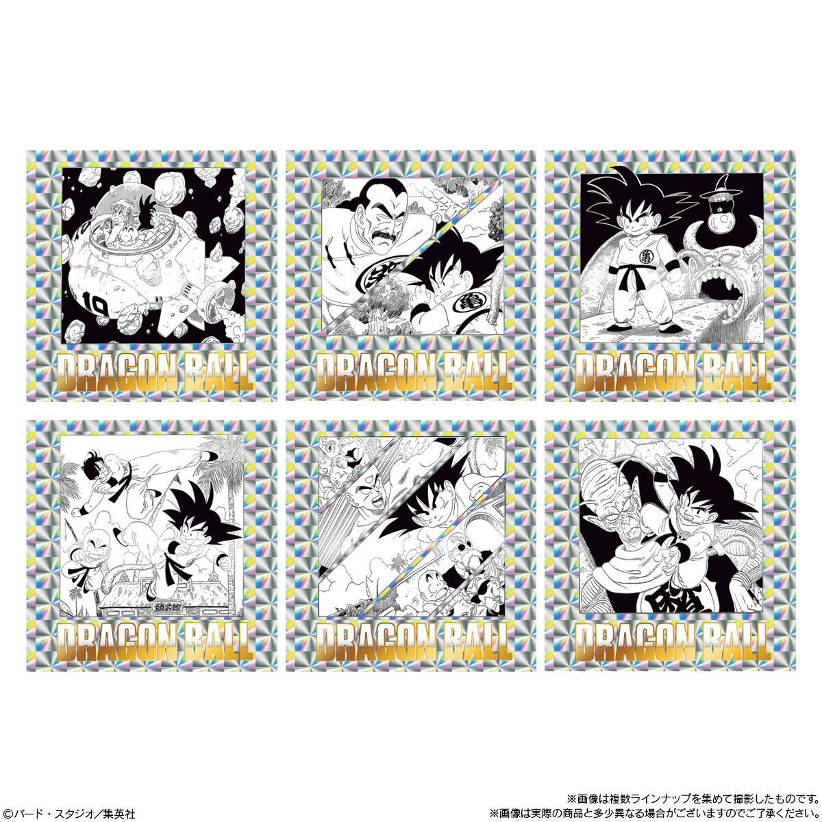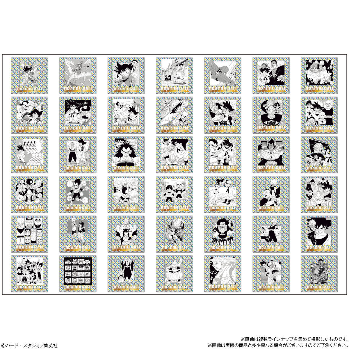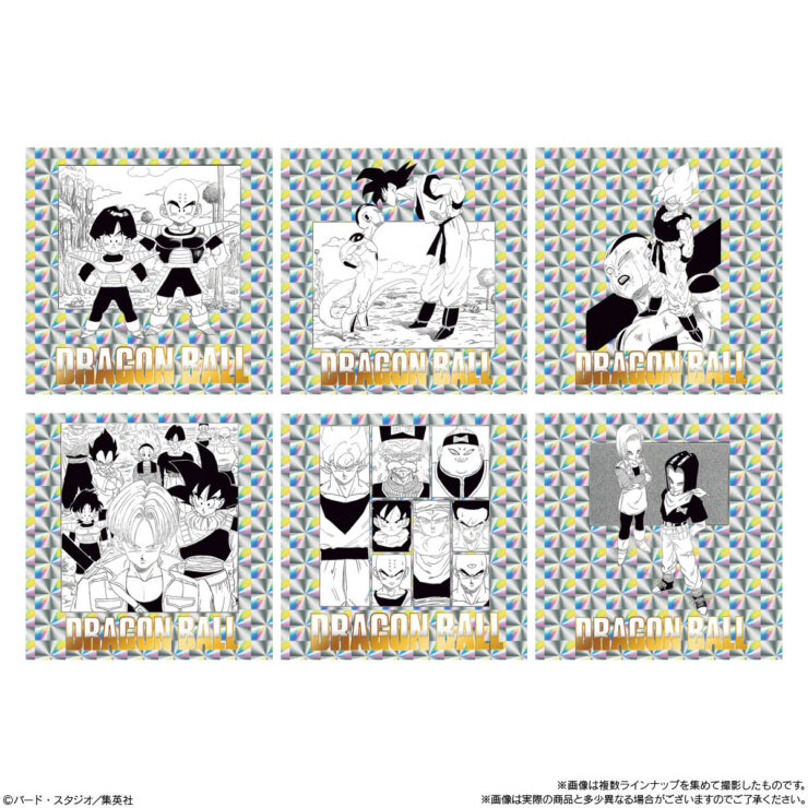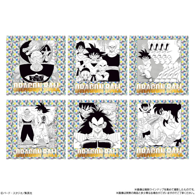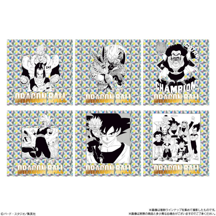 『ドラゴンボール』の原作コミックス全42巻・各巻より、ドラゴンボールの物語が詰め込まれた1枚絵やバトルの様子などが描かれた扉絵を1種ずつラインアップしたとされ、シールは全種キラキラ光るホログラム仕様&金色銀色ダブル箔押し加工が施されています。